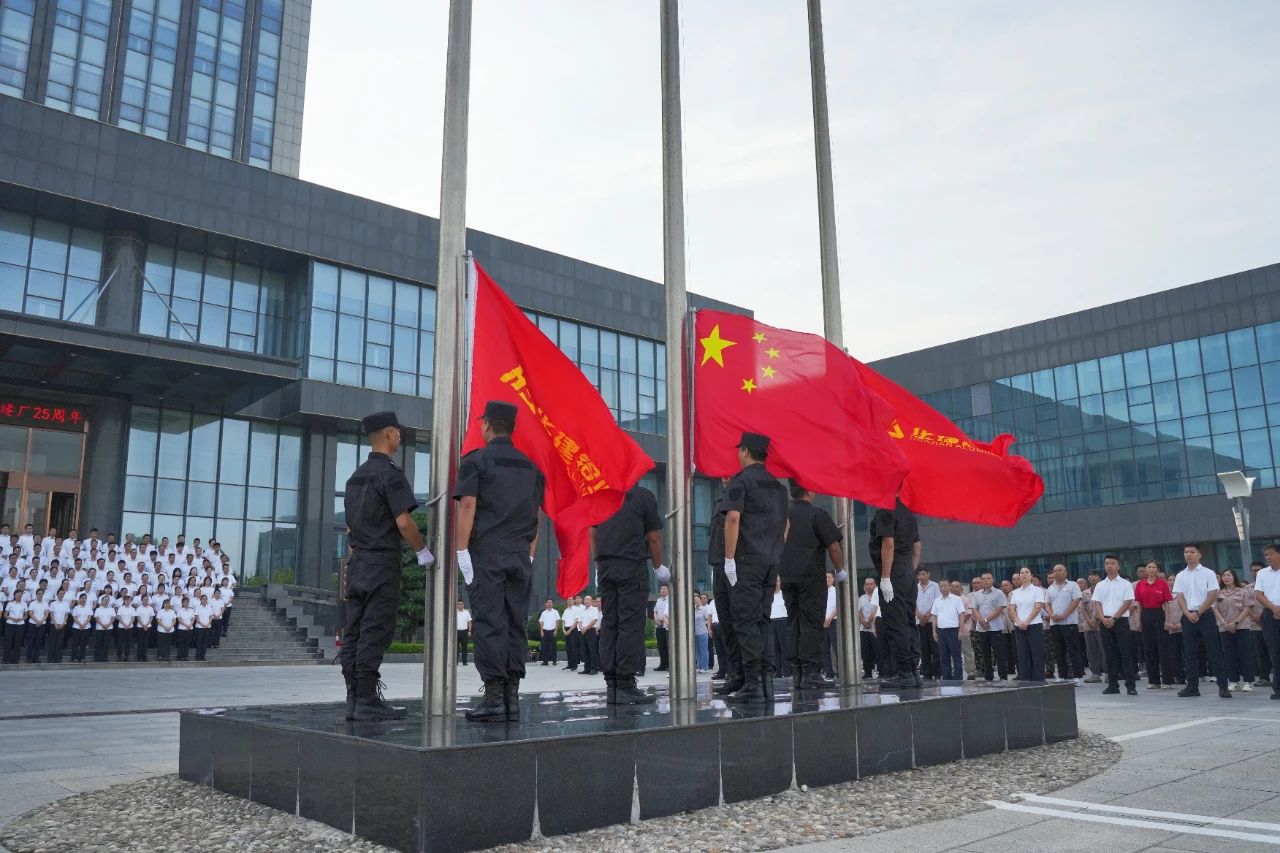 红旗飘飘,暖阳拂面,8月20日山东华建铝业集团迎来了建厂25周年厂庆纪念日,上午集团总裁办公会领导,分厂、成员企业及职能部门员工代表齐聚在集团大厦前隆重举行升旗仪式,深刻回顾发展历程中的辉煌成就与坚实足迹,展望未来高质量发展的壮阔蓝图。